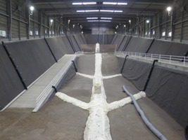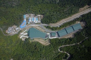 HOME>指宿広域管理型最終処分場 指宿広域管理型最終処分場指宿広域クリーンセンターでごみを処理したあとに発生する焼却残さを埋め立てます。遮水シートに覆われた処分場に埋め立てられ,無害化・安定化するまで散水を行い,浸出水は,水処理され国が定めた排水基準以下の水質にしてから放流します。![]() 緑色屋根の右側が増設処分場,左側が再生処分場,その間に管理棟・浸出水処理施設建屋があります。 所在地鹿児島県南九州市頴娃町郡10995番地1 施設概要